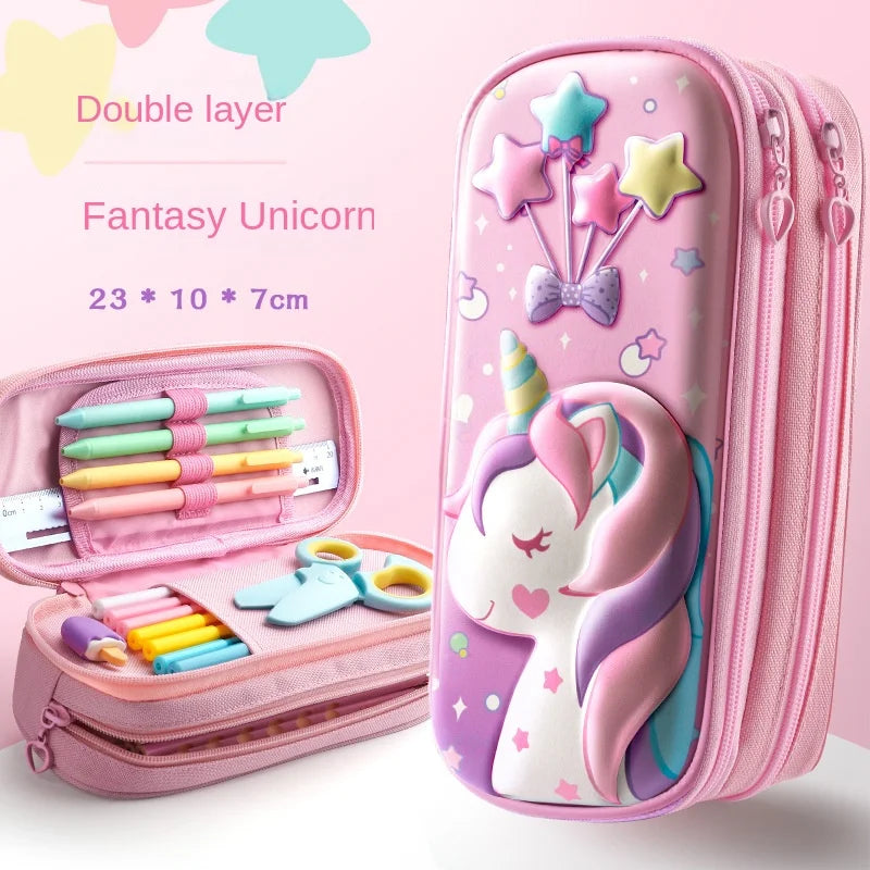 🦄 3D EVA Unicorn Cute Pencil Case – Cartoon Stationery Box & Colorful Pen Case for Girls & Students 🎨✨