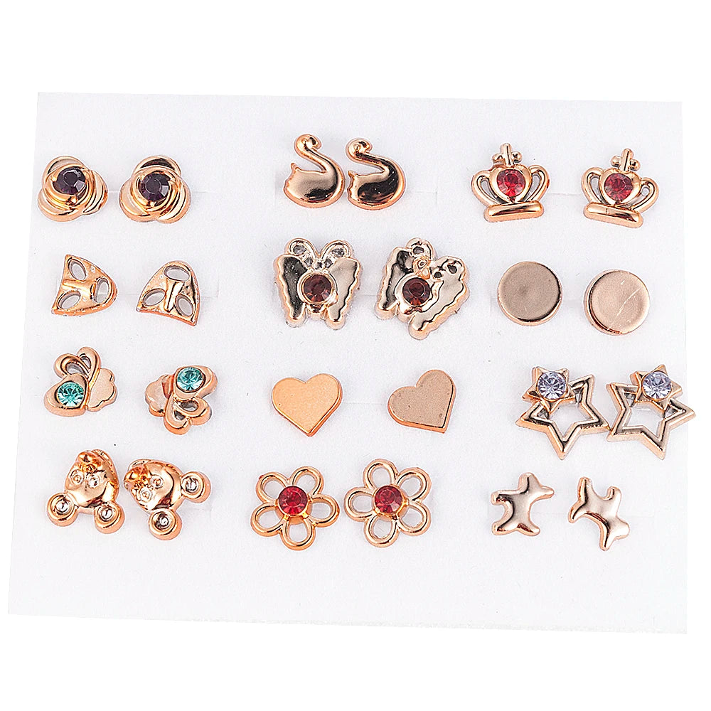 Includes 12–36 pairs of stud earrings in a variety of random stylesElegant flower designs with sparkling diamante detailsGold color finish enhances the overall aestheticLightweight and comfortable for all-day wearPerfect gift for birthdays, holidays, or special occasions for jewelry loversGreat for adding a pop of sparkle to casual or formal outfits