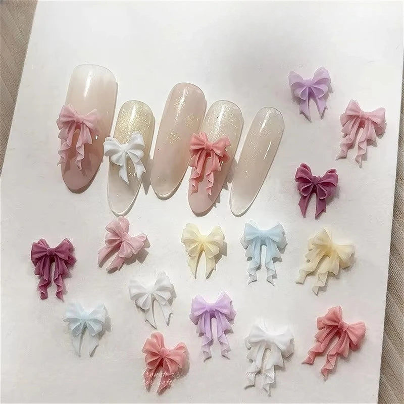 French Ribbons Resin Bowknot Charms for Nail Art Enthusiasts
